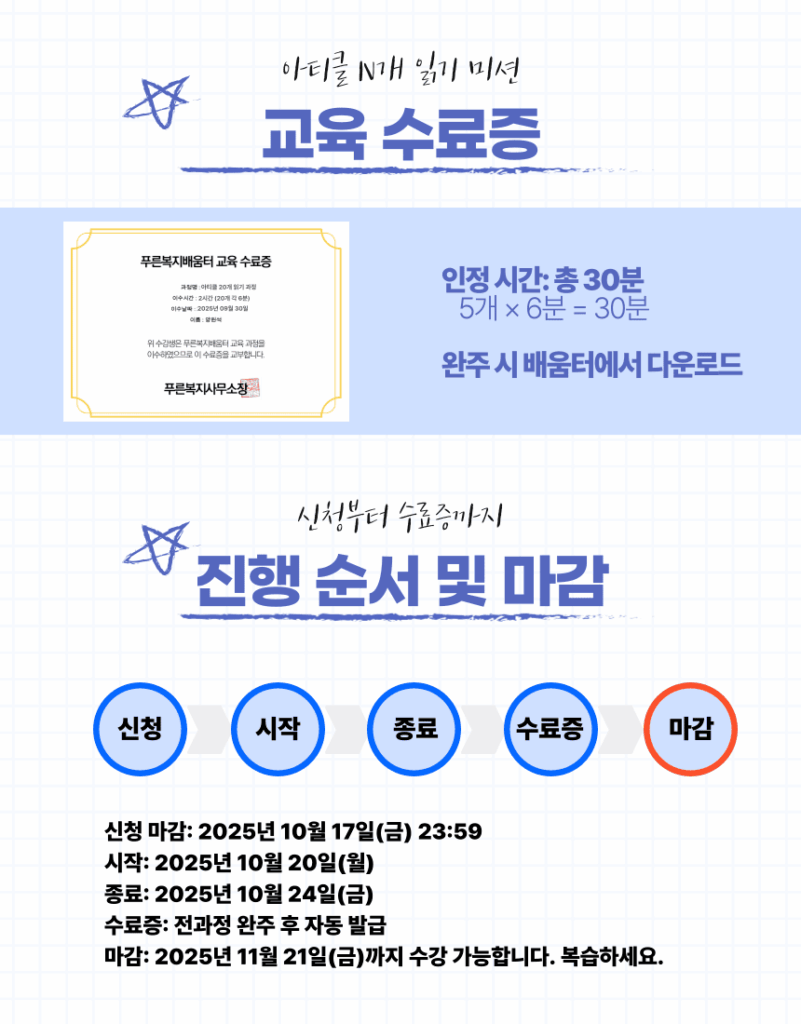 수료증은 상단 메뉴 : [내 정보] → [내 수료증] 에서 받으실 수 있습니다.